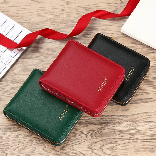 レディース 財布 二つ折り ラウンドファスナー財布 3色 レッド グリーン ブラック 送料無料 代引き不可