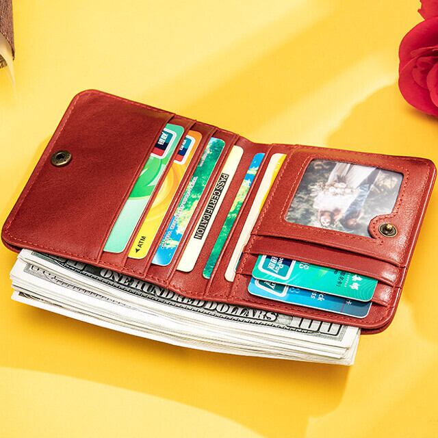 シンプルデザインの本革2つ折り財布です。