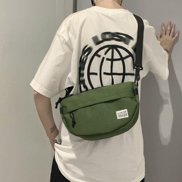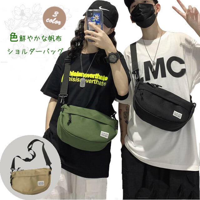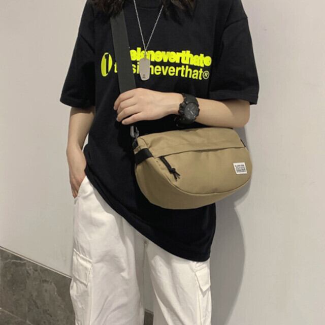 メール便対応のショルダーバッグです。男性・女性問わず、幅広いシーンで使える3色展開。カーキ、グリーン、ブラックの中からお好みの色を選んでください。小さめのサイズ感で持ち運びもラクラク。旅行やお出かけにも便利な軽量設計です。ナイロン系オックスフォード素材を使用しているため、耐久性も抜群。また、送料無料でお届けいたしますが、代引き不可となっておりますので、ご了承くださいませ。